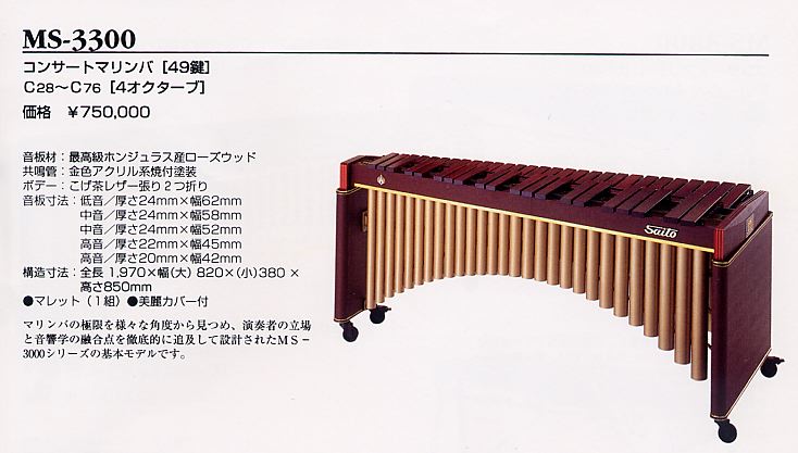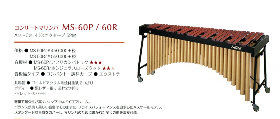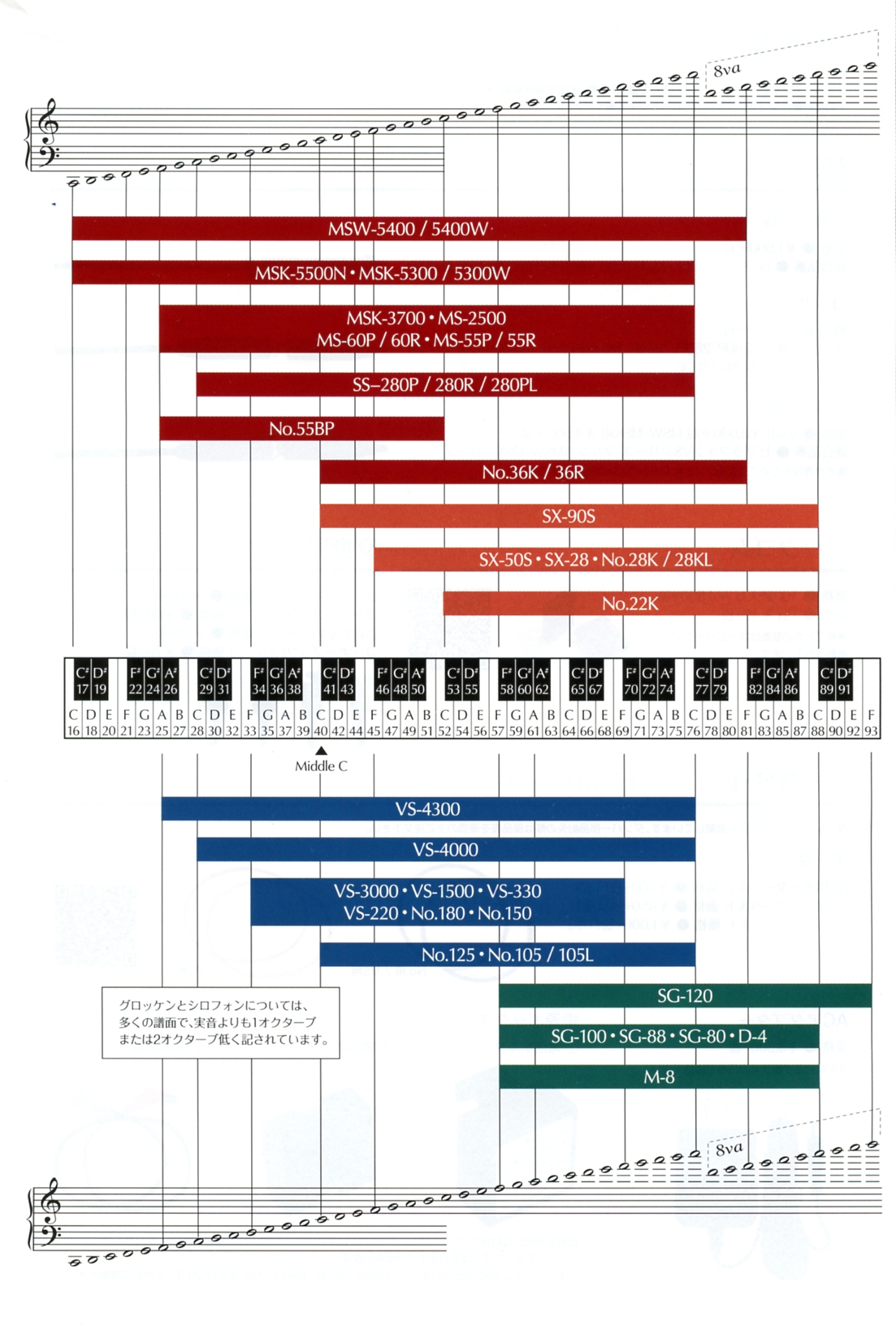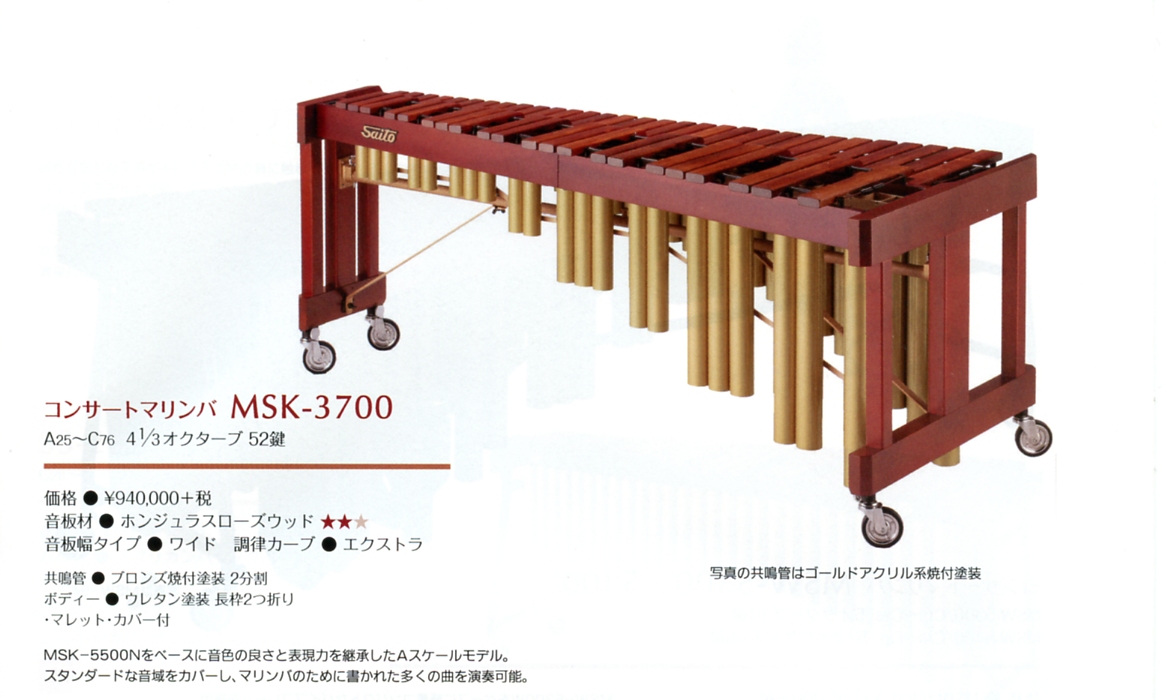 | ビブラフォン | 6 | 9,900 | Saito VS-1500 37鍵 F33-F69 (3 oct.) ★ 音域表